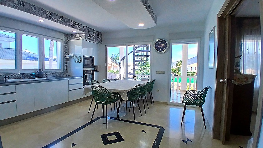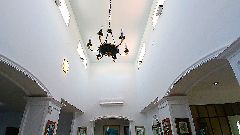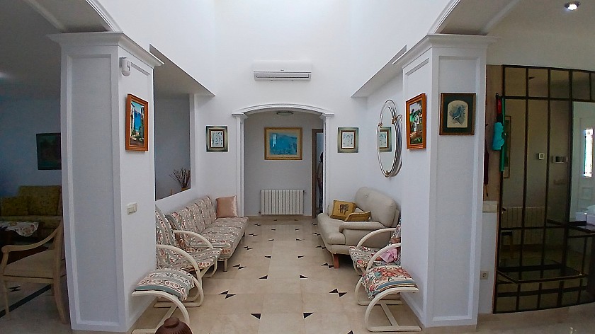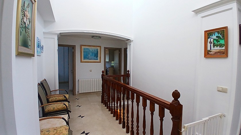 The main floor has 270 m2, containing a spectacular entrance hall with high ceiling and automatic operated windows, large living room, a very spacey and bright modern kitchen with quality electro-domestics, an extra kitchen or utility room, four bedrooms and three bathrooms.