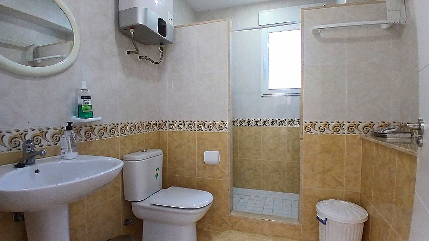 Under the staircase from the main floor to the garden, there is a technique room for the water supply, because the property has its own well, which provide water for the pool, irrigation and car wash. Here is also located a toilet and shower for wet pool-people.