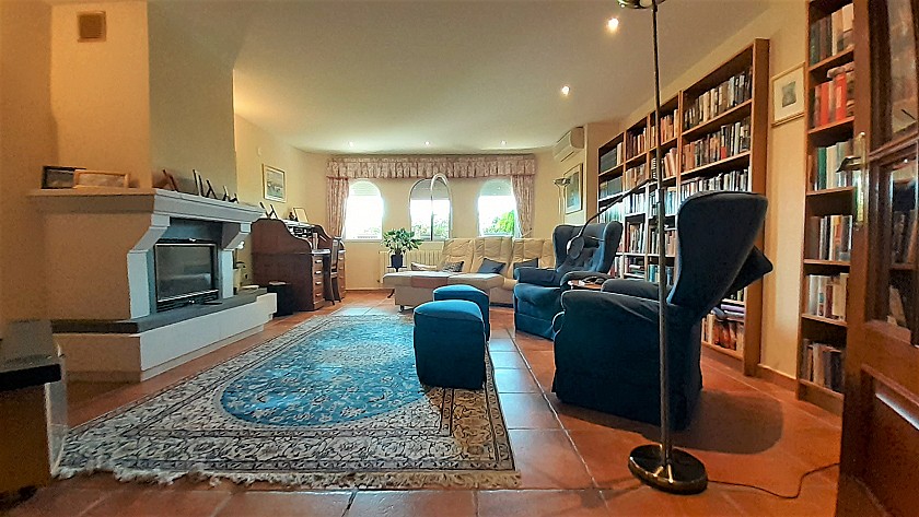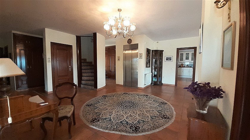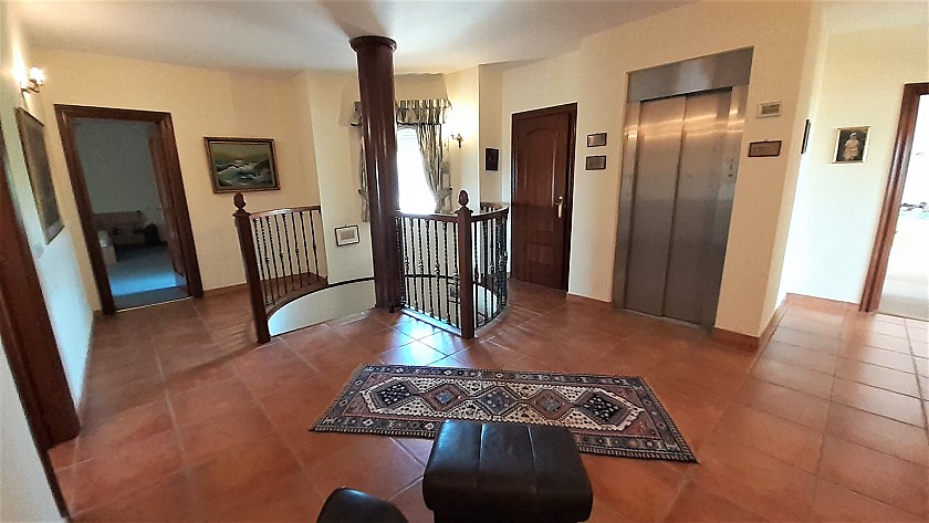 The main house has 5 bedrooms, 4 with bath, guest toilet, lift, kitchen, 2 halls, dining room, living room and library with fireplace.