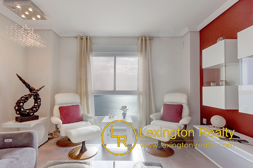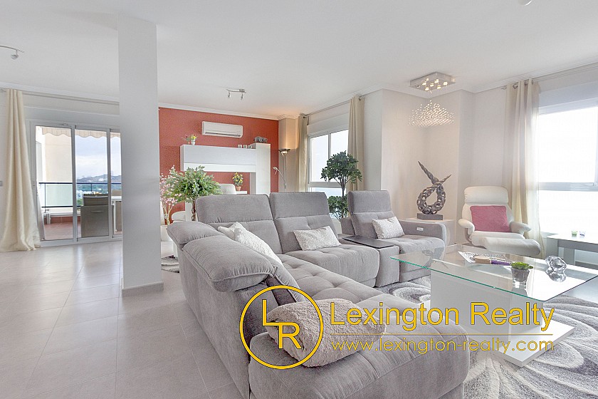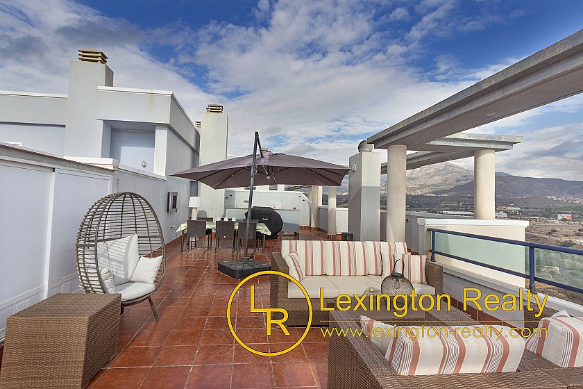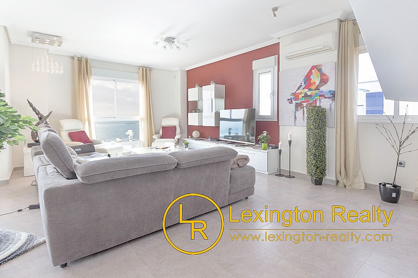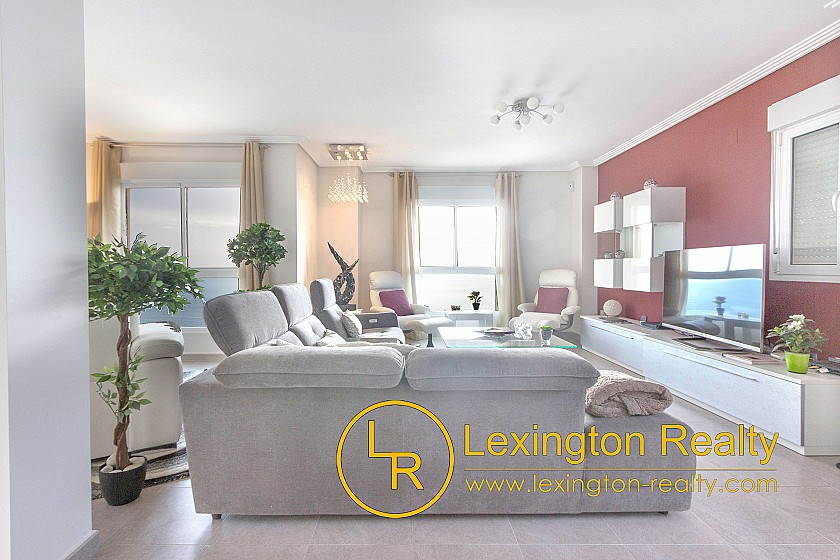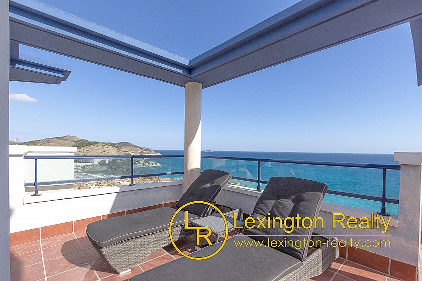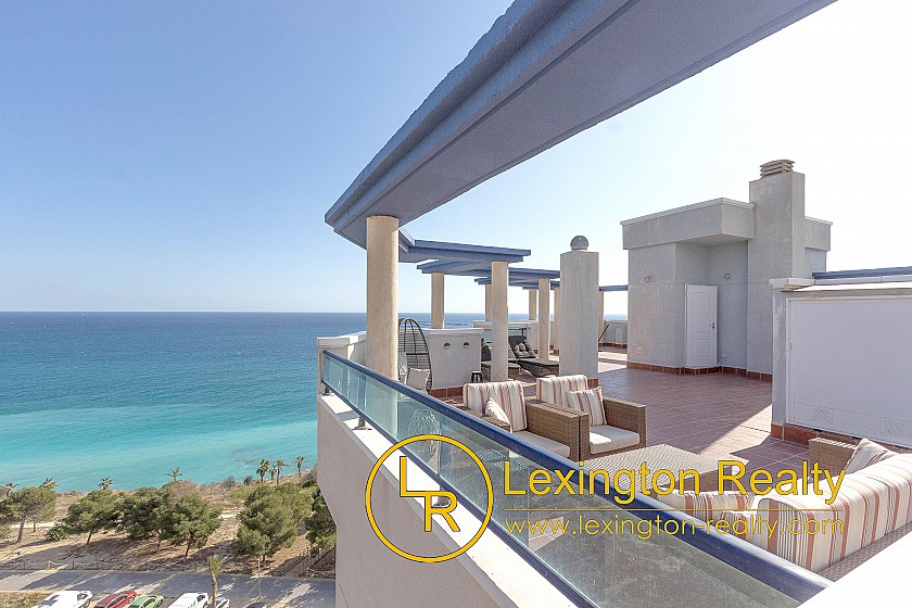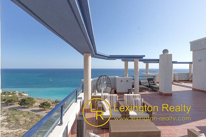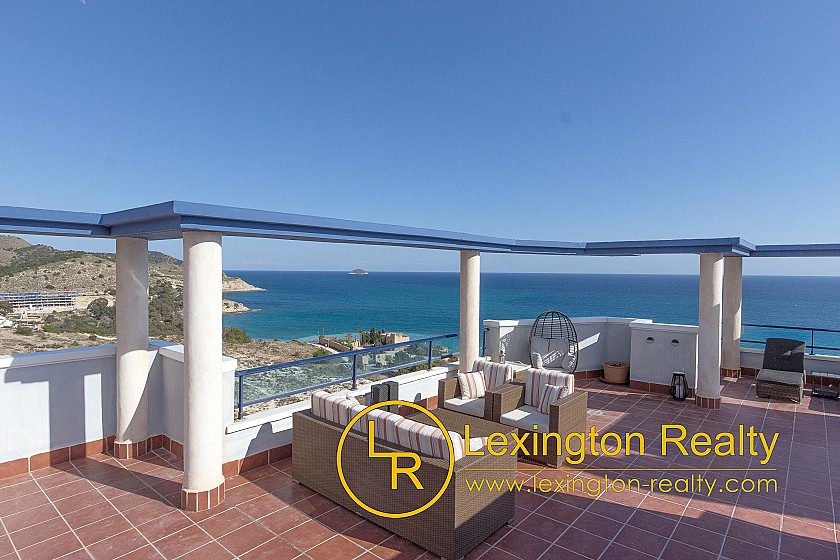 Next to Allonbay village at Playa de Torres in first line this very large penthouse apartment is now for sale with Lexington Realty. It is located just outside Villajoyosa 2 minutes walk from the beach and 5 minutes drive to Benidorm.