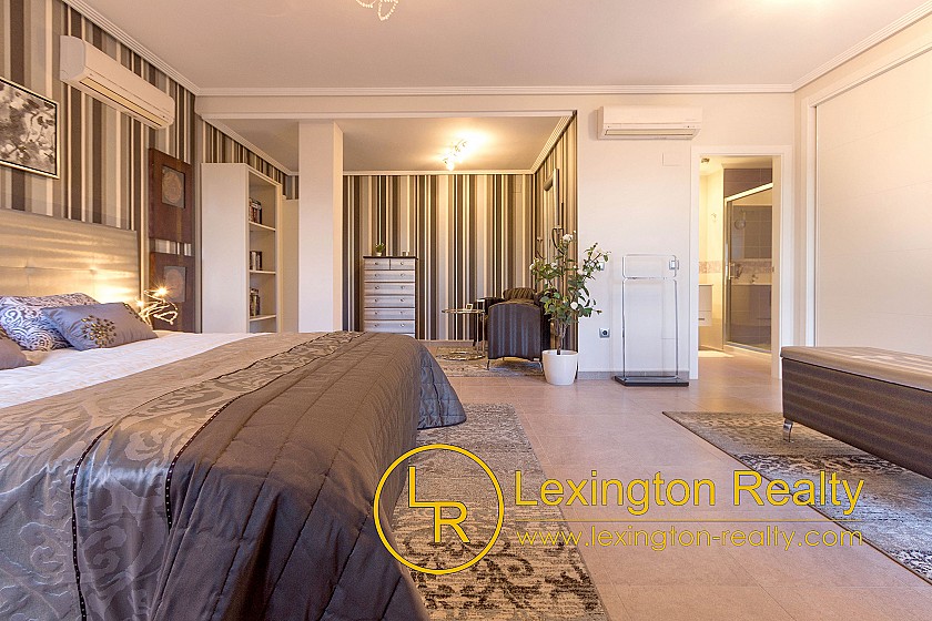 The Penthouse consists of 4 bedrooms all ensuite, dining area, open plan kitchen with exit to terrace and ample lounge on the main floor all in all 255 m2. On the upper floor you find a 180 m2 roof terrace with barbecue and plenty room for a jacuzzi as well.  From all rooms and of course from the terraces there is a stunning sea view.