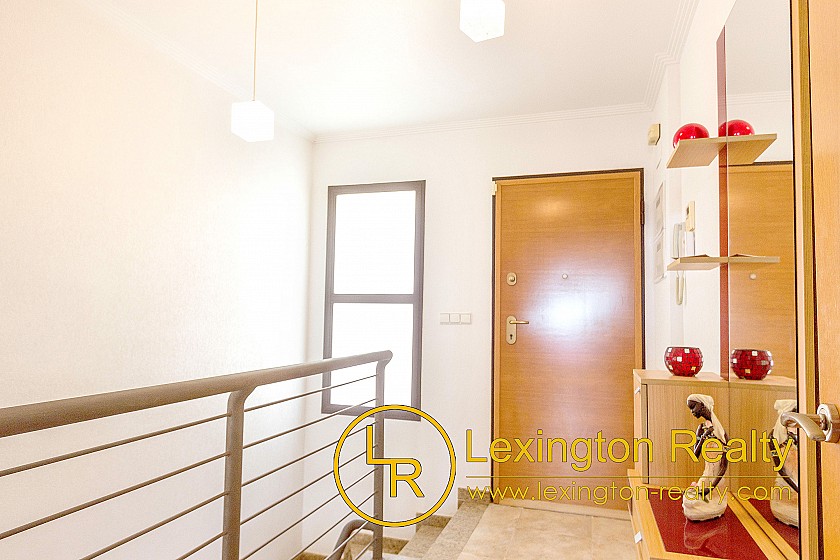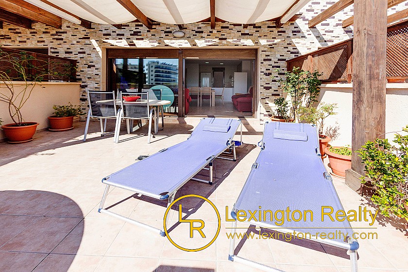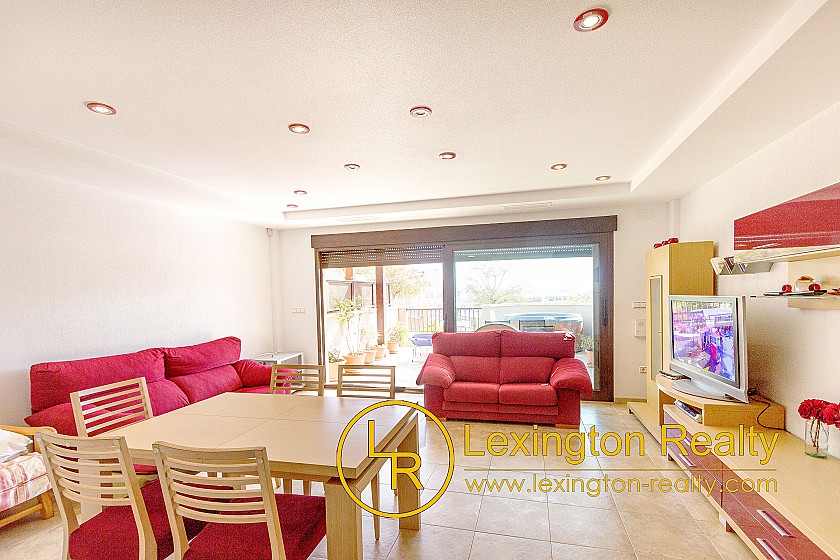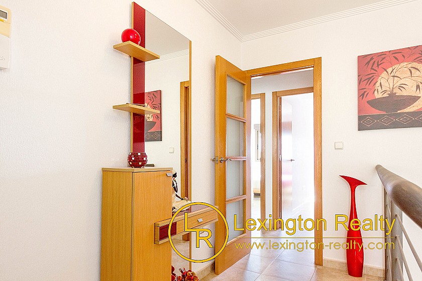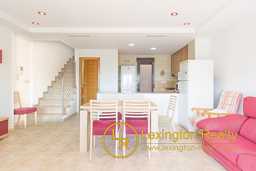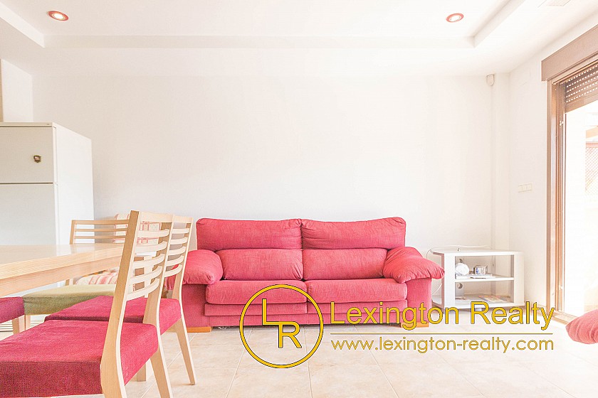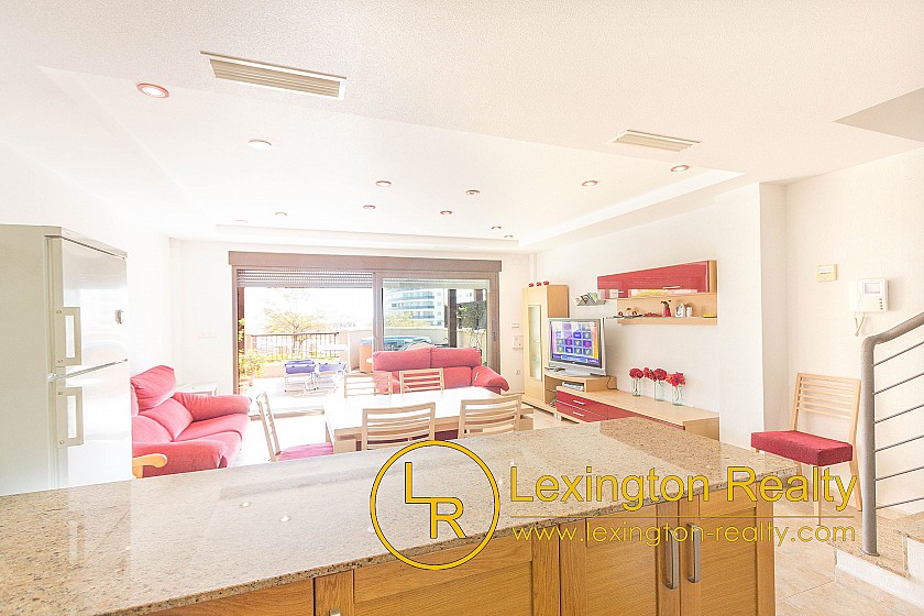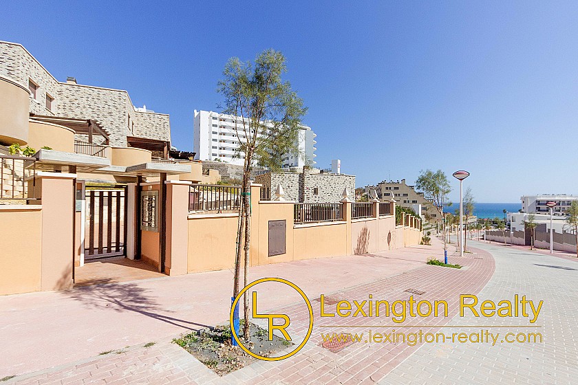 Now for sale with Lexington Realty is this townhouse built with high-quality materials. It is distributed on two floors. On the first floor, there are three large bedrooms with fitted wardrobes in each of them and two bathrooms. The ground floor has got a large living-dining room with extra-large windows to the front terrace from which there is some sea views. The first floor is completed with an open kitchen, a toilet, and a back patio.