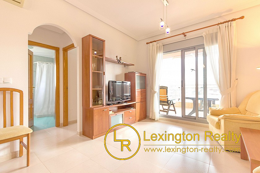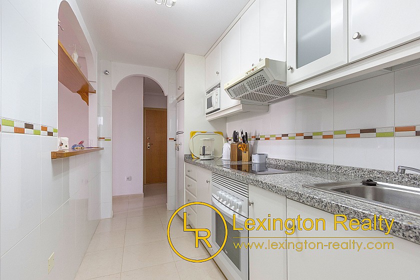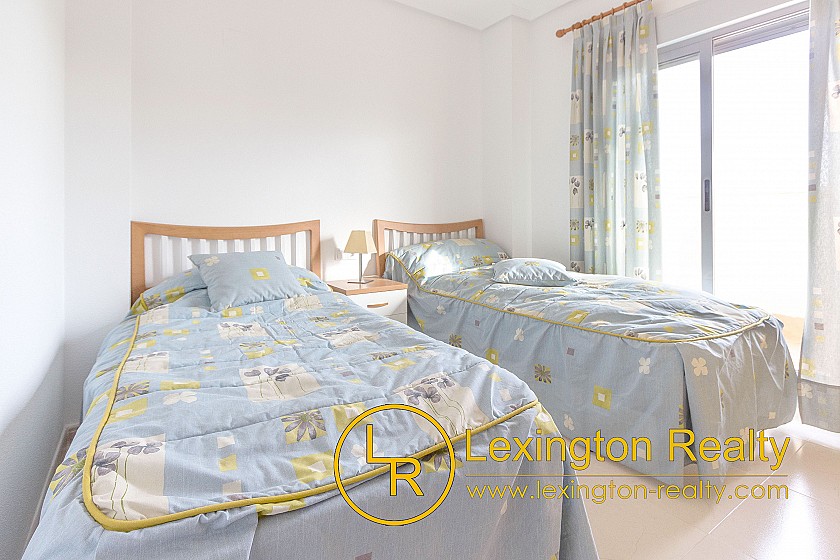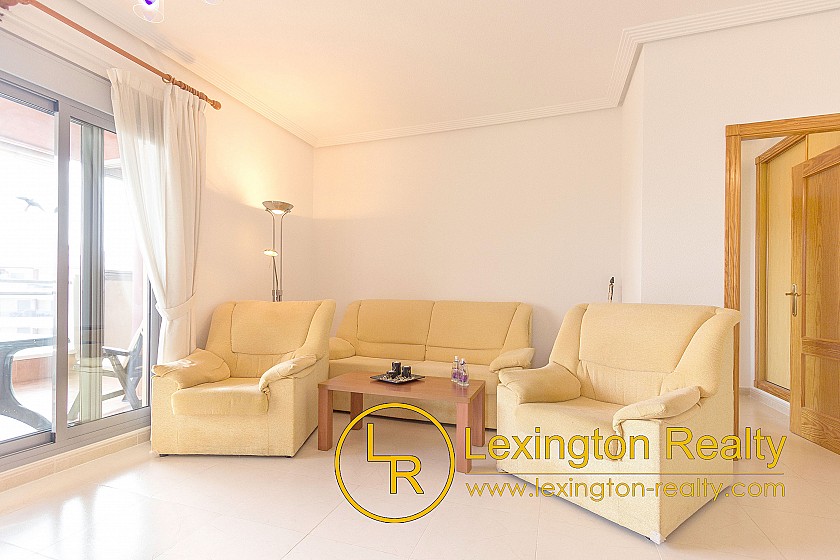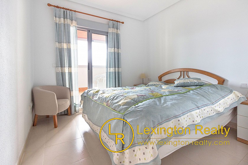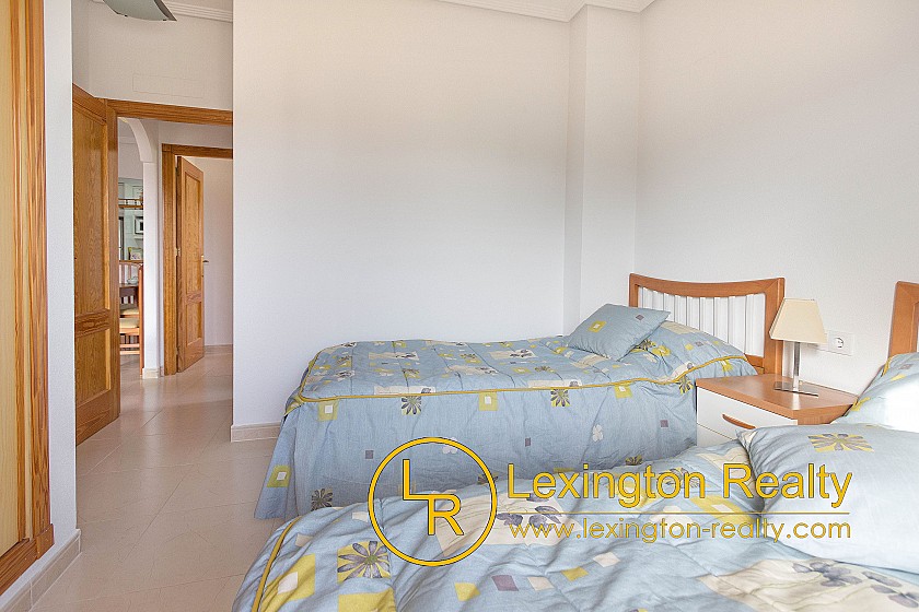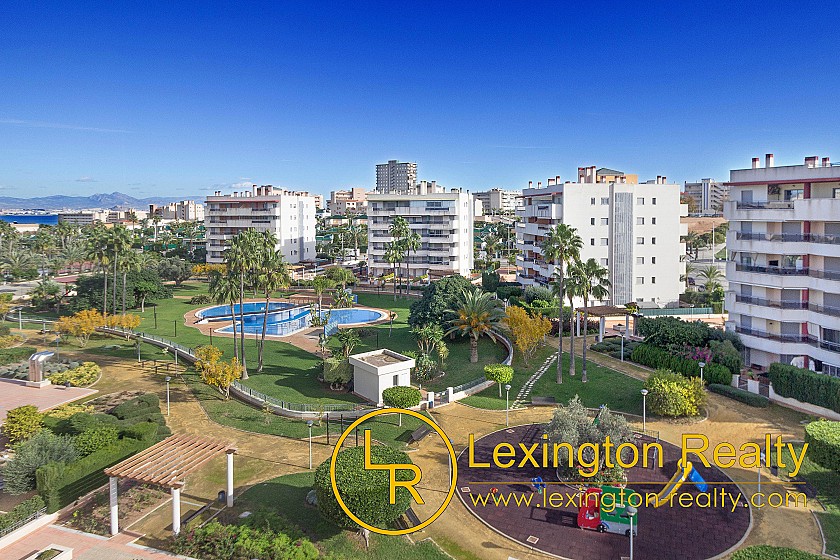 Just 10 minutes walk from the beach this top floor apartment is now for sale with Lexington Realty. It located in a gated area with green areas, pools and tennis courts. The apartment consists of 3 bedroom, 2 bathrooms, lounge, kitchen, utility room and an ample terrace. To the apartment belongs an underground parking space and a storage room.