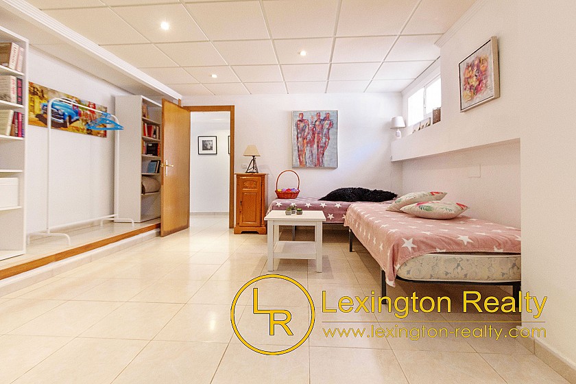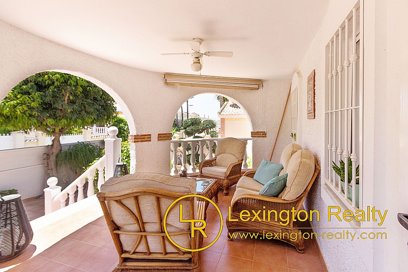 On the upper floor there is a arge roof terrace with wonderful views to the mountains and to Alicante city. The villa is sold fully furnished including white goods. It is nicely decorated and ready to move into.