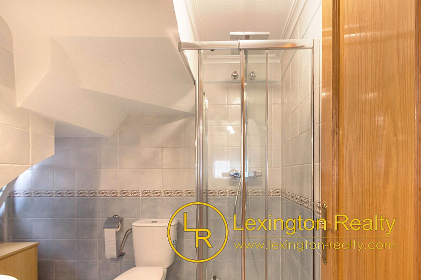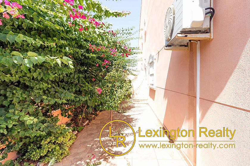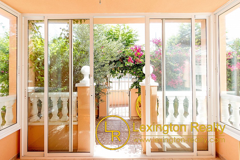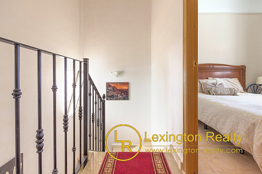 Located in a quiet area this corner townhouse is now for sale with Lexington Realty. The townhouse is distributed on two floors. The ground floor is distributed in a porch, a dining-living, a kitchen, a double bedroom, a shower room, and a laundry. In front of the porch, there is a nice garden surrounding the house. On the first floor, there is the master bedroom with an ensuite bathroom, a single bedroom, and a bathroom. In front of the master bedroom, there is a sunny terrace.