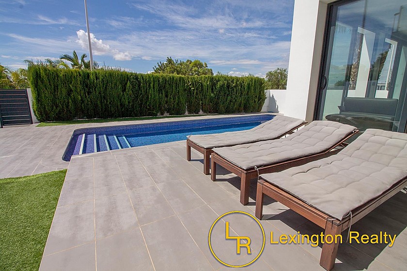 Modern recently new build villa with private pool and in walking distance to amenities. 5 minutes from the beach and 25 minutes from Alicante airport.