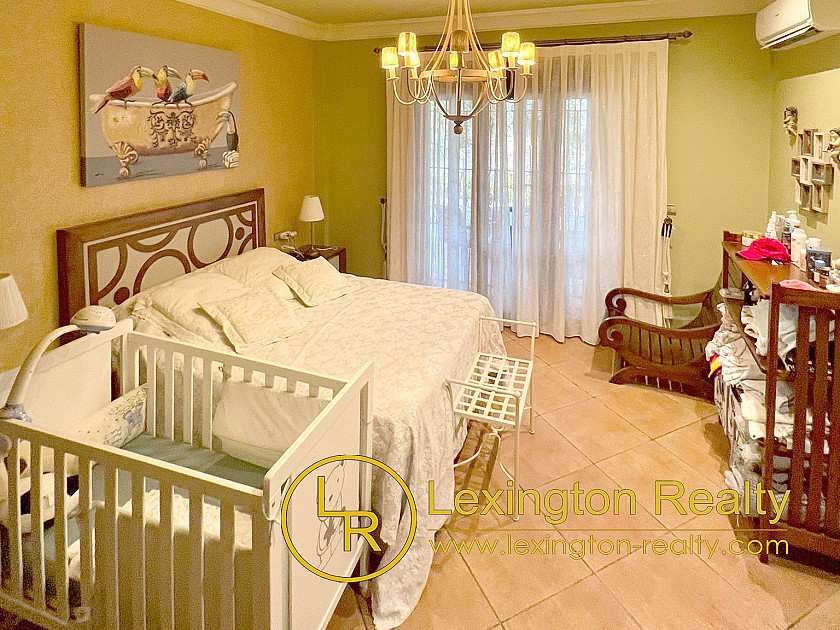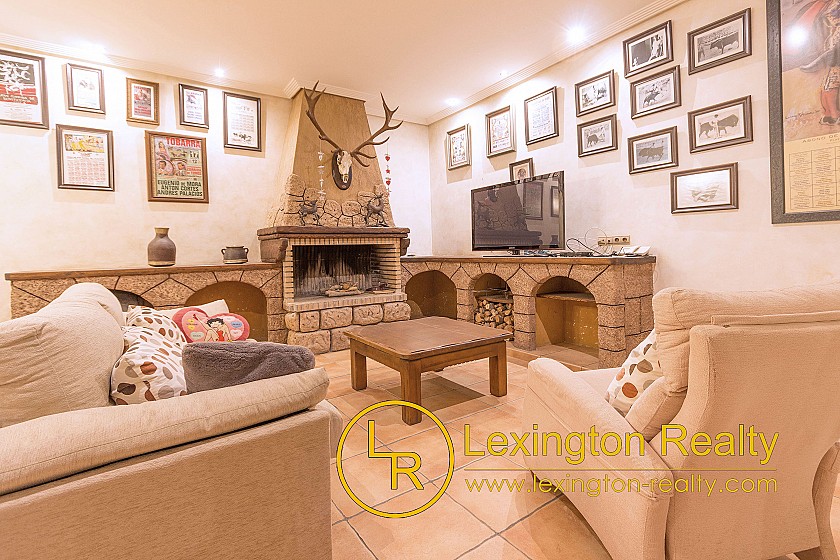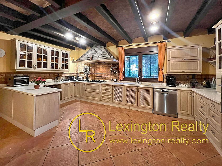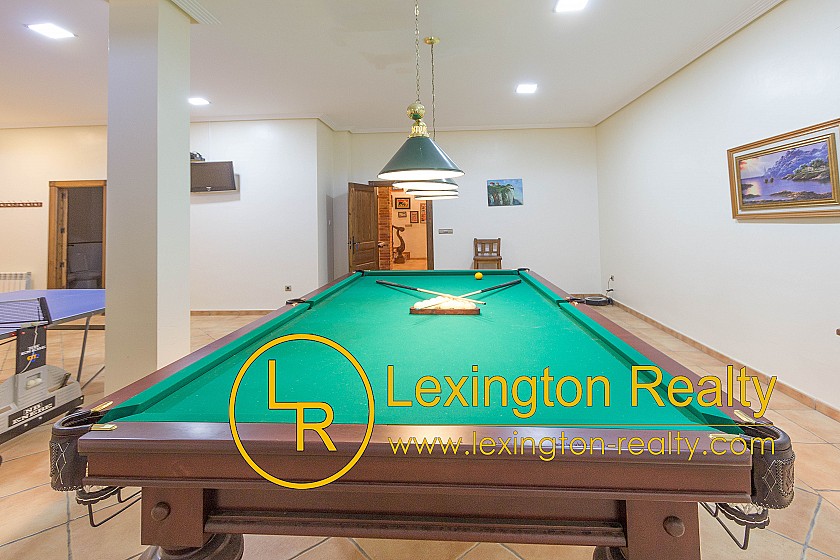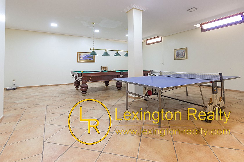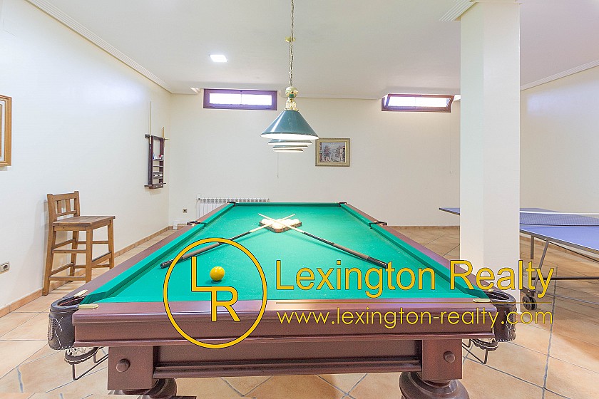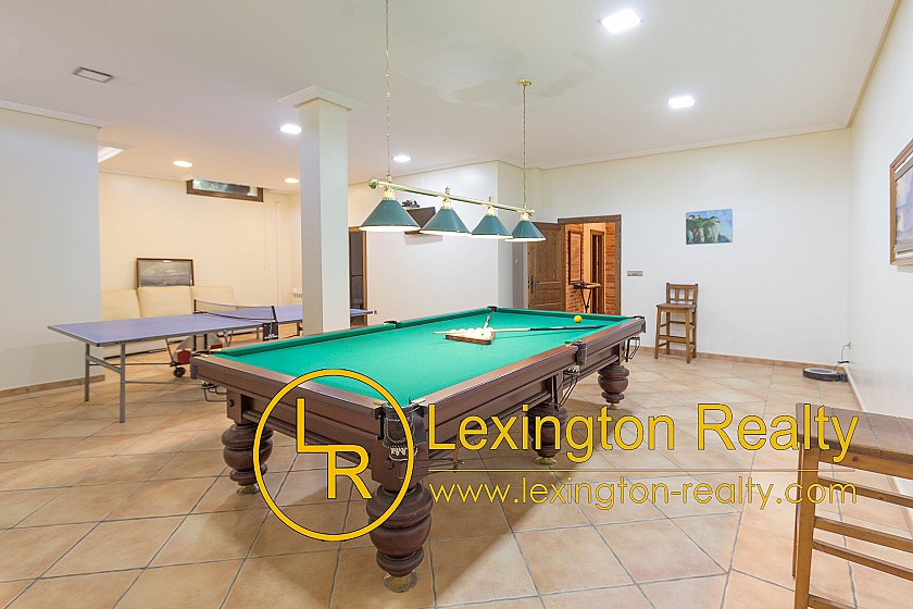 Spectacular 450 m2 villa consisting of: 5 bedrooms, 5 bathrooms, large independent kitchen, huge living room with dining area, fireplace and hall. Stylish finishes and high quality materials. Huge terraces with barbecue area. Sauna and independent games room. The house is air-conditioned and has a basement. There is a large private heated swimming pool on the plot.