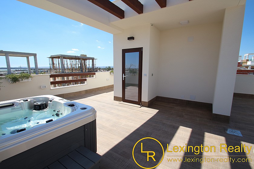 This fascinating villa, built with top-quality materials and advanced technology, features 3 bedrooms, 3 bathrooms, an American-style kitchen with a breakfast bar, and a bright living-dining room. Furthermore, it offers a large private plot with a pool, garden, and garage. On the top floor, a spectacular solarium awaits you with fantastic views of the natural surroundings of the Torrevieja – La Mata salt lakes, an inspiring landscape that you can enjoy at any time of day.