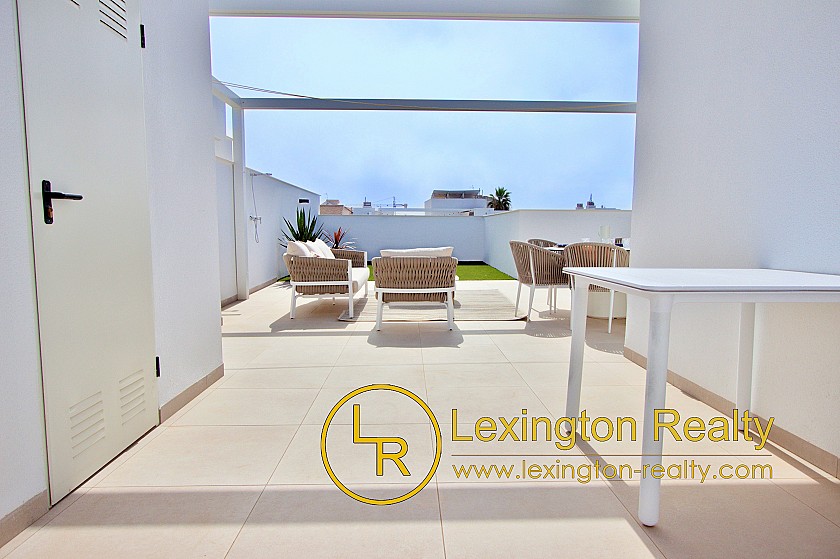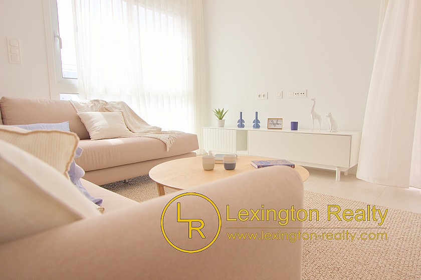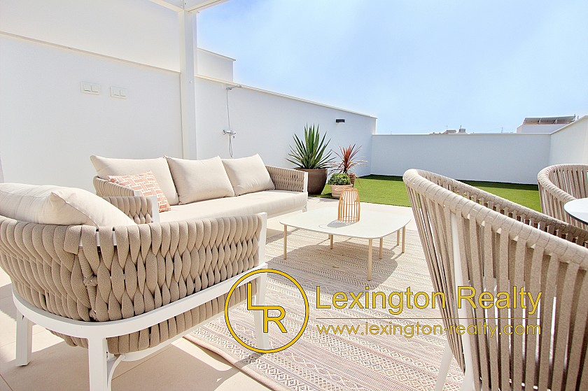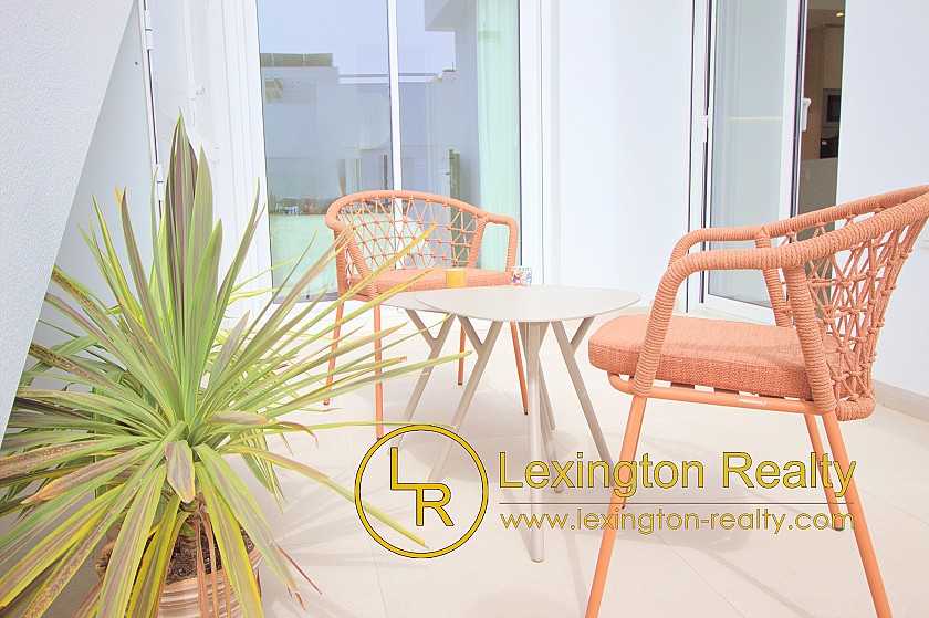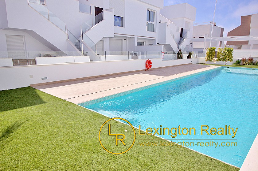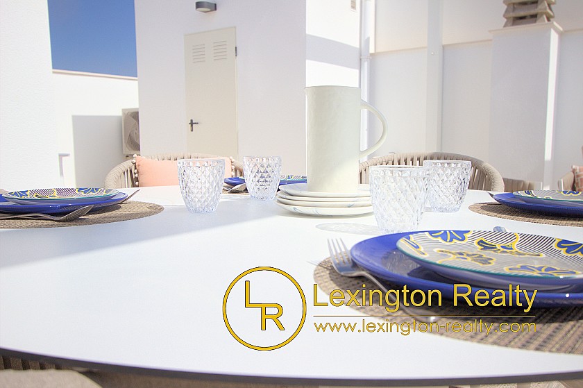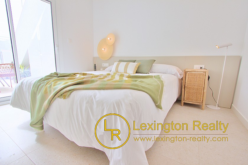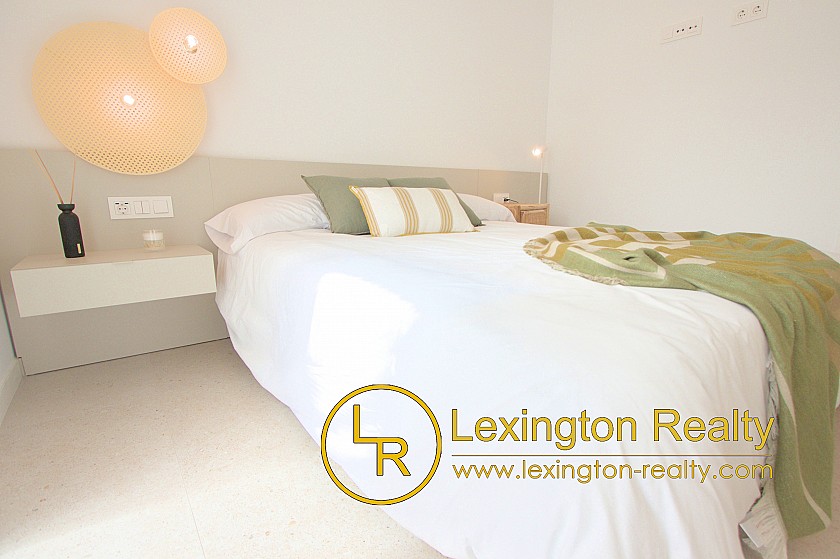 Las viviendas incluyen apartamentos de 2 dormitorios en planta baja y apartamentos de 3 dormitorios en la planta alta con solárium. Los soláriums cuentan con cocina de verano cerrada, aseo y pérgola.