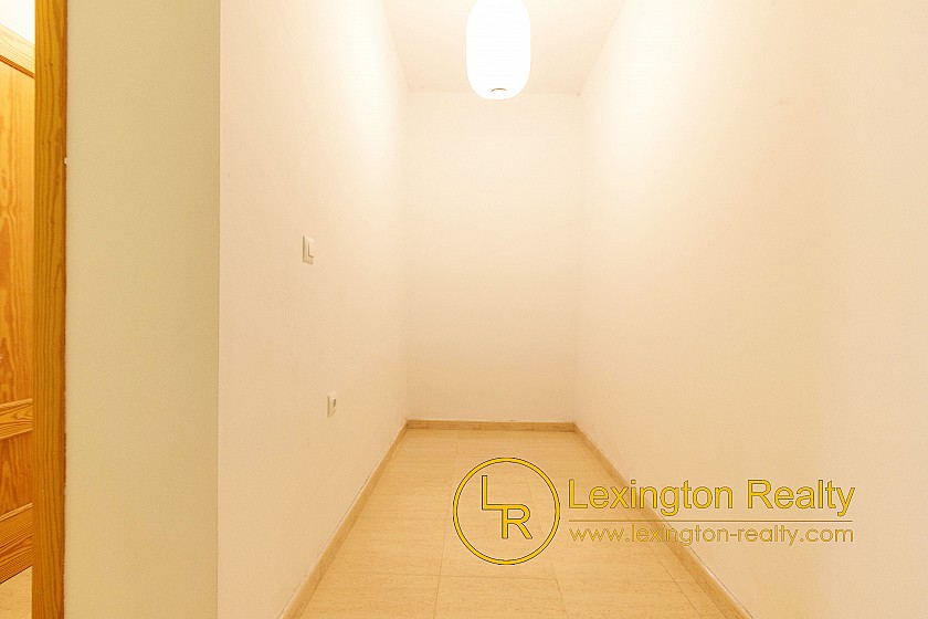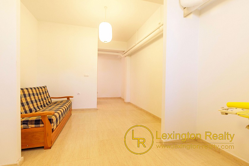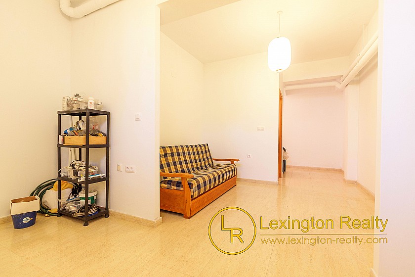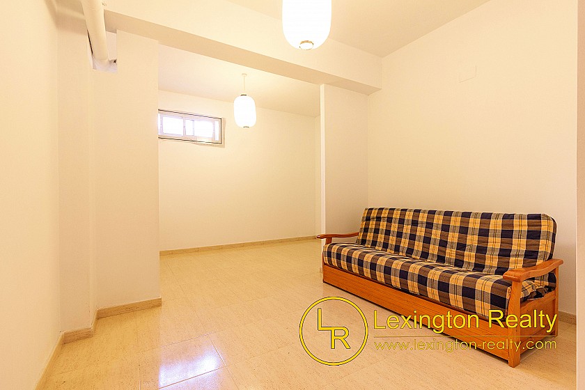 The townhouse for sale with Lexington Realty presents a bright and inviting home. The living room features a simple and comfortable configuration offering a spacious and versatile space. The bedrooms are equally cosy: the master bedroom features a warm wood-frame bed and soft, neutral tones that create a relaxing atmosphere. The second bedroom, with two single beds and colourful bedding, is perfect for guests or family. Furthermore, the house has a large basement for multiple purposes, such as an extra bedroom, games room or storage room and additionally owns a sunny roof terrace, with sea views. The home's overall aesthetic is clean and practical, ideal for anyone looking for a simple and welcoming living environment.
